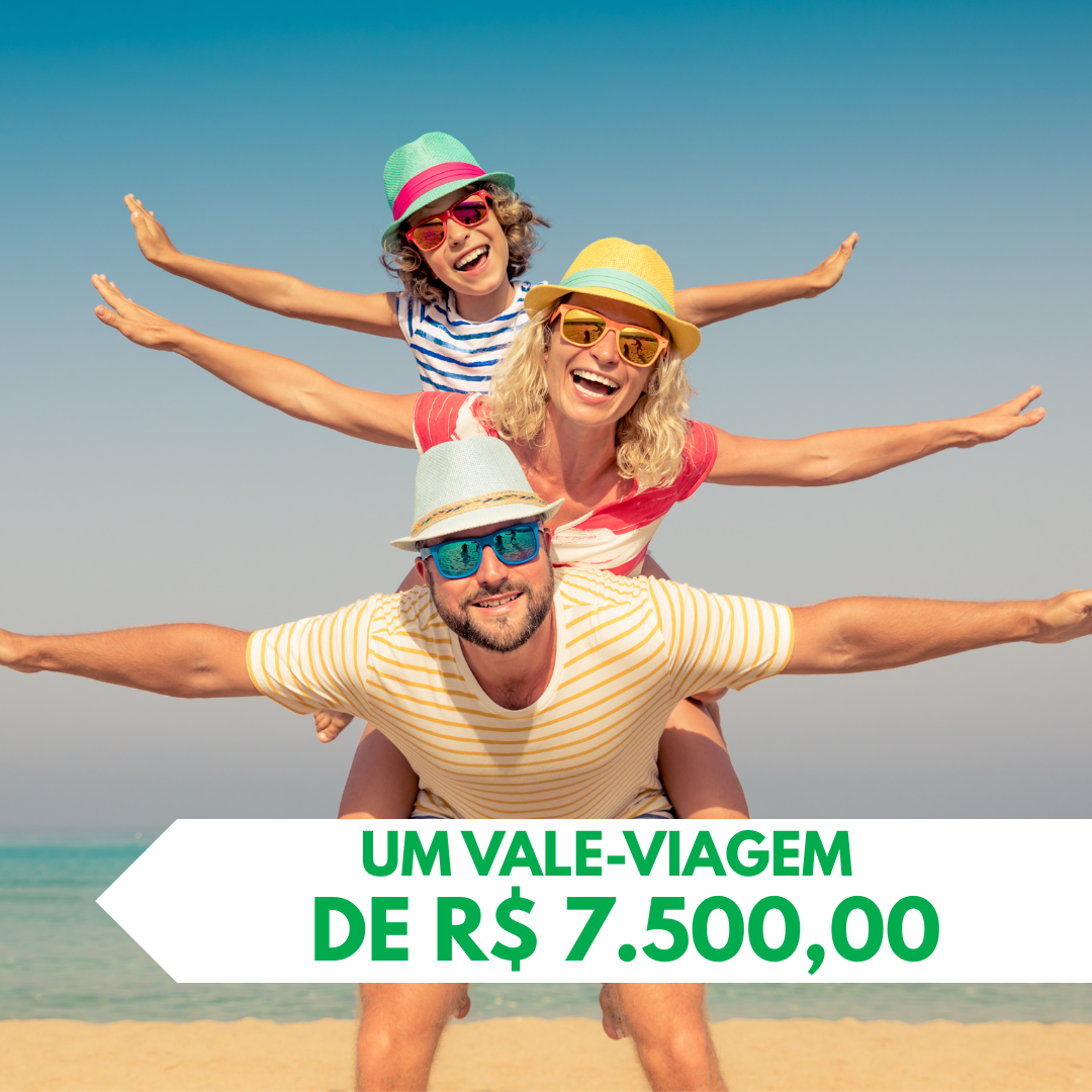 Escolha o destino dos seus sonhos! Esse valor poderá ser usado para passagens, hospedagens e passeios para você aproveitar do seu jeito.